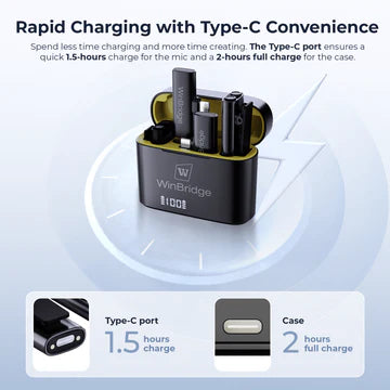 Spend less time charging and more time creating. The Type-C port ensures a quick 1.5-hour charge*for the mic and a 2-hour full charge for the case.
